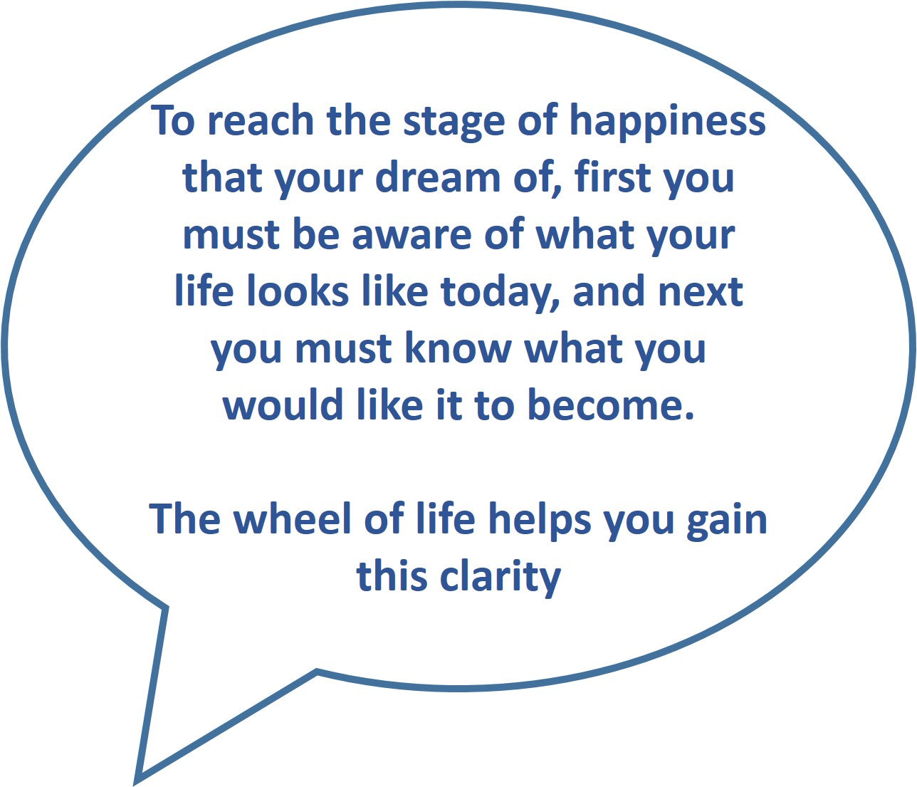 To reach the stage of happiness that your dream of, first you must be aware of what your life looks like today, and next you must know what you would like it to become. The wheel of life helps you gain this clarity.