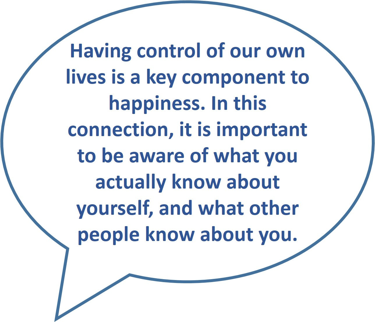 Having control of our own lives is a key component to happiness. In this connection, it is important to be aware of what you actually know about yourself, and what other people know about you.